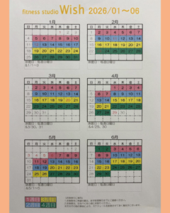 フィットネススタジオWish、2026年1月~6月のレッスンカレンダーができました📅