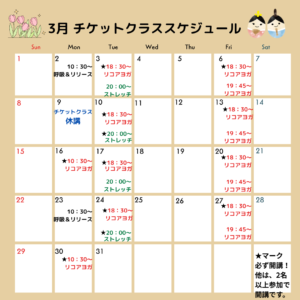 毎週月曜日:チケットクラスのみ開講